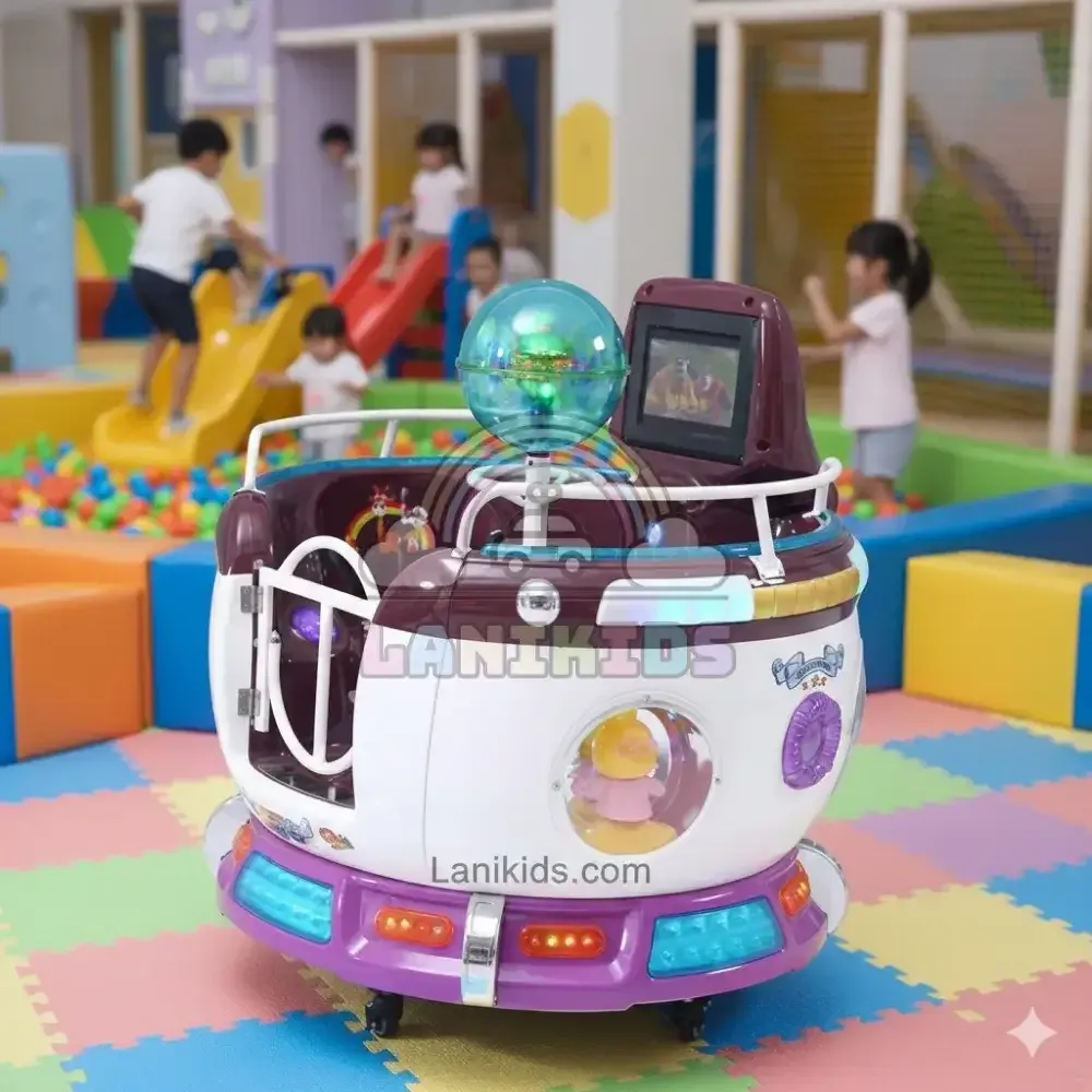 Sản phẩm được Công ty TNHH Lanikids nhập khẩu và phân phối độc quyền, sở hữu cơ chế vận hành xoay tròn kết hợp rung lắc nhẹ nhàng, mô phỏng cảm giác ngồi trên những chiếc phi thuyền không gian hay những tách trà xoay trong các công viên giải trí lớn. Với kích thước đường kính 1070mm và chiều cao 800mm, đây là thiết bị "vừa vặn" để trở thành tâm điểm của mọi khu vui chơi trong nhà, siêu thị hay các quán cà phê kids.